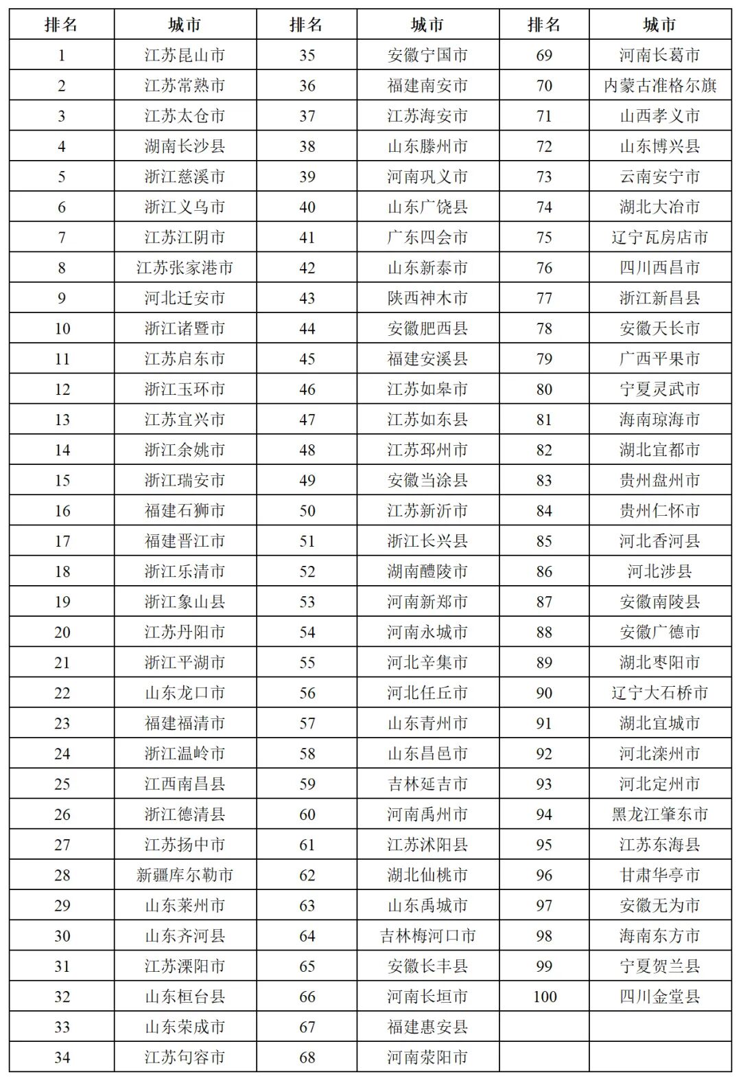 据悉,本研究的评价对象界定为:县级市、县以及空间相对独立的市辖区,以及发展基础较好、具备“建市”条件的镇。百强县市:县级市、县、自治县、旗。百强区:含有乡镇、相对独立发展的市辖区(并剔除了北京、上海、天津、重庆四大直辖市的市辖区)。