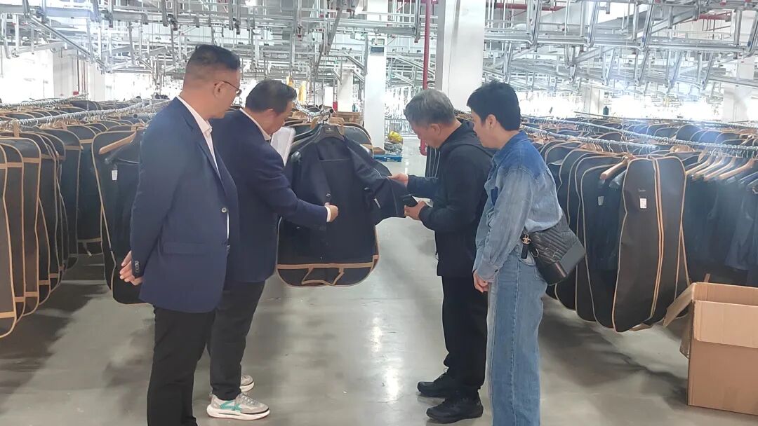 11月20日上午,河南省服装行业协会会长李刚和淮滨临港国际服装城董事长侯东美一起走进阳光(河南)服饰科技有限公司调研座谈。
