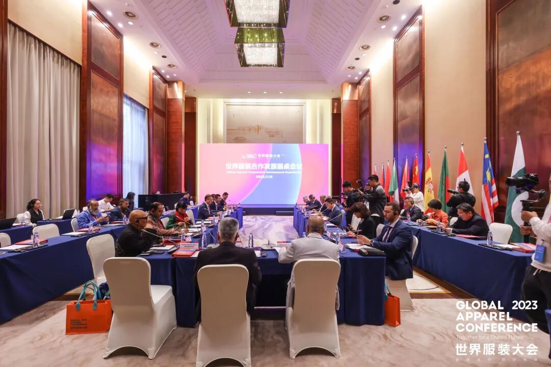 会上,国际纺织制造商联合会前主席、中国纺织工业联合会会长孙瑞哲,香港中文大学(深圳)前海国际事务研究院院长、广州粤港澳大湾区研究院理事长郑永年,意大利时尚工业联合会执行主席、意大利皮具制造商协会主席、联合国意大利道德时尚倡议部战略总裁 Riccardo Braccialini,韩国纤维产业联合会会长崔炳五,意大利时尚工业联合会副主席、意大利米兰The One Milano成衣展首席执行官Elena Salvaneschi等重量级嘉宾,围绕《中国新发展 世界新机遇》《全球秩序与多元现代化》《创新驱动高水平国际合作》《全球合作 共创未来》主题,通过主旨发言和圆桌对话的形式,共同探讨当今时尚行业的热点话题以及全球时尚未来的发展趋势和合作机会。