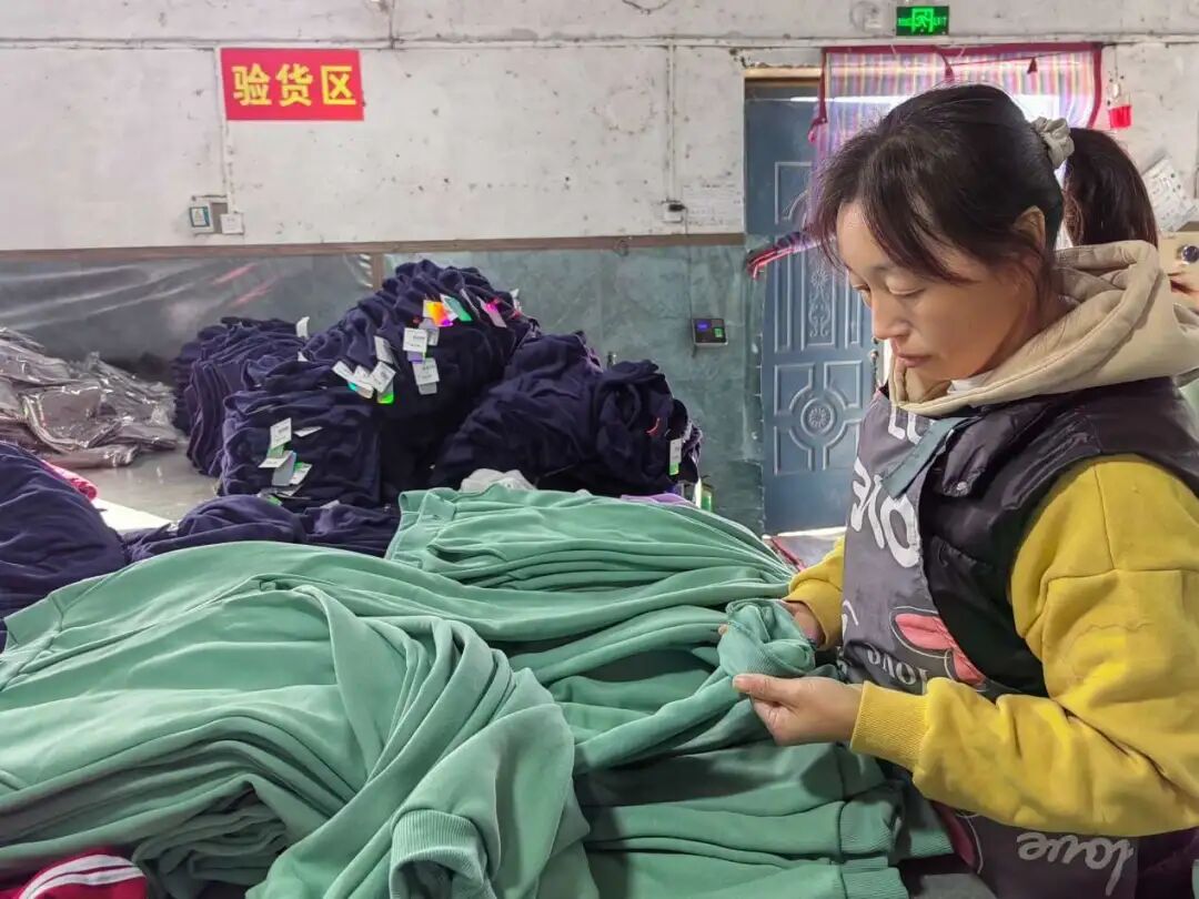 相比宁广翠,60多岁的张秀芝更显得知足者常乐:“我的工序是剪线头,工资低,一天也就五六十块钱,这个数我也不嫌少,一个月1000多块钱,解决了我和老伴的基本生活问题,还能给孙子孙女买个零嘴儿。”
