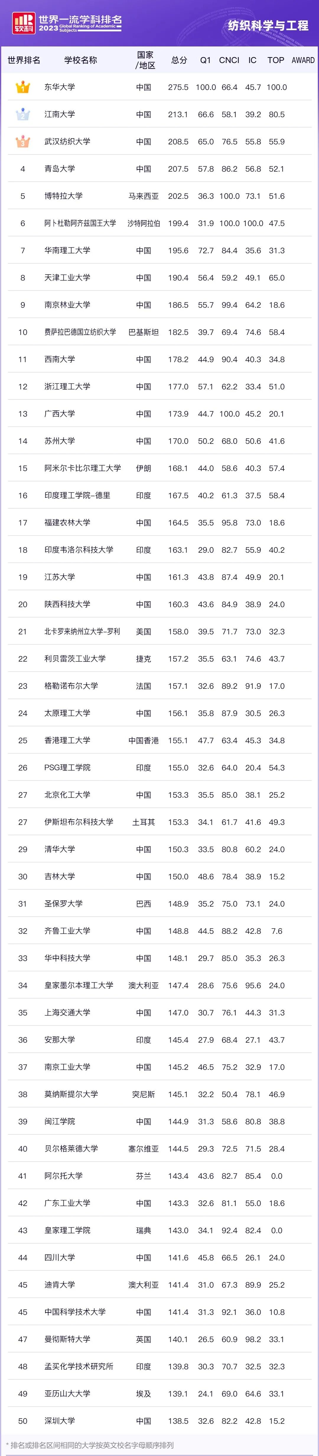 / 前四名都在中国!2023世界一流学科纺织专业排名发布