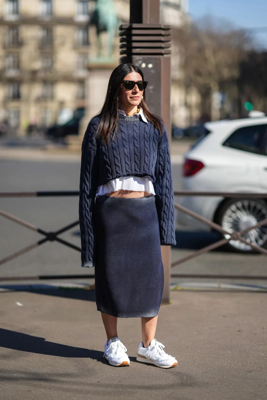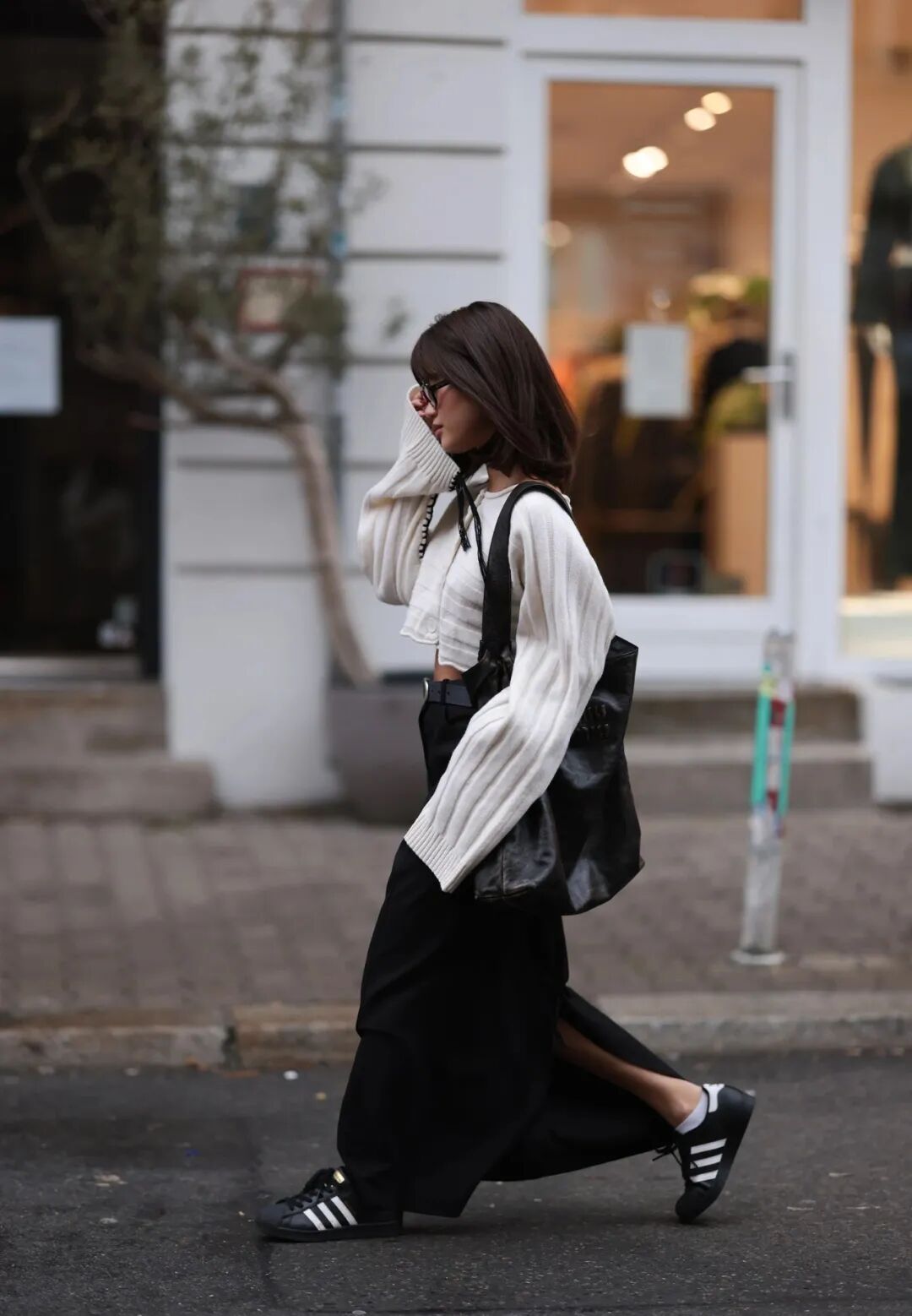 如果将裙子与运动鞋结合起来,它将成为打造壮观秋季造型的关键。无论选择百褶裙、短款还是舒适的针织版型,2023/24 年秋冬的流行趋势表明,所有这些款式都将具有相关性。运动鞋和裙子的组合将是最简单、最通用的解决方案。