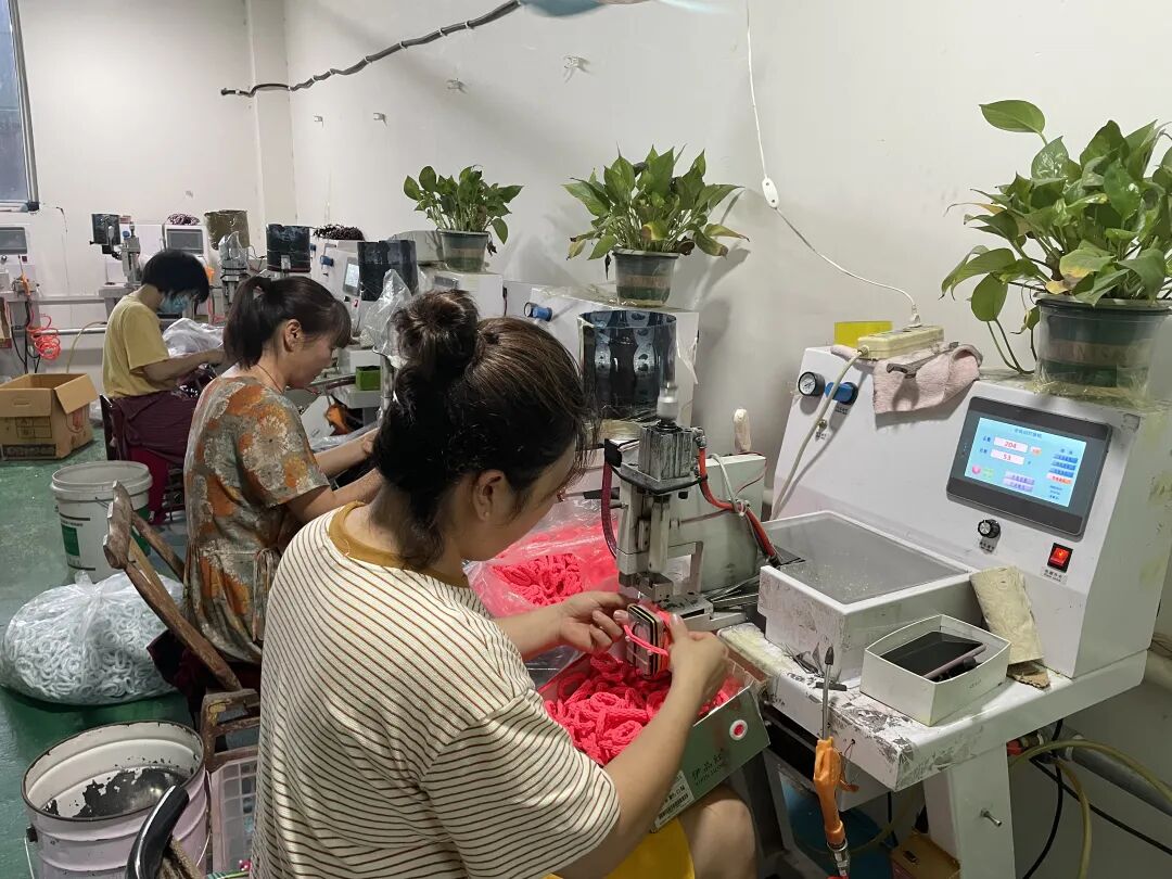皮筋生产企业开始使用自动化数控机器生产小皮筋,并逐步实现智能化、数字化。李亚锋摄
