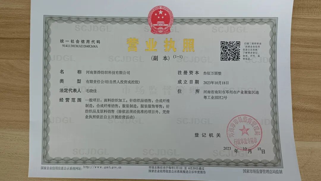 10月18日,绍兴玉峰纺织有限公司在邓州投资注册的河南景烨纺织科技有限公司正式注册落地,这是河南省服装行业协会邓州专班与邓州各级政府紧密合作,今年成功引进的第9家企业。