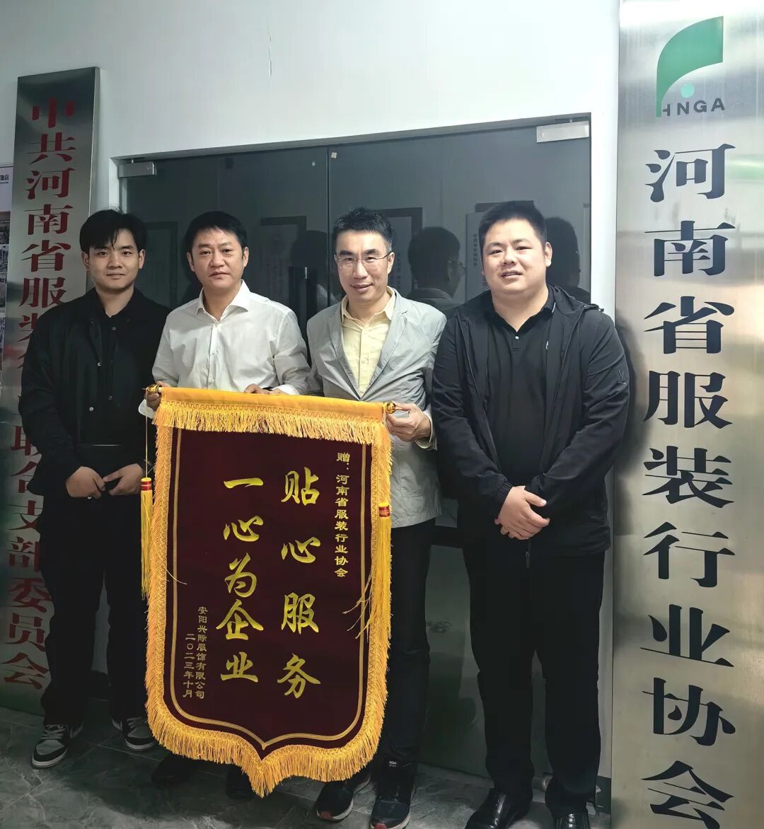 10月17日,安阳兴际服饰有限公司总经理李方田为河南省服装行业协会送上了一面写着“贴心服务,一心为企业”的锦旗,对协会为企业落地提供优质高效的服务表示感谢和赞许!