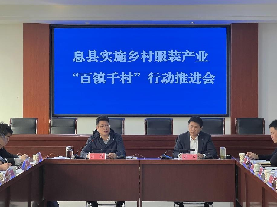 会议要求,充分认识息县发展乡村服装产业的必要性和可行性。在全县范围内实施乡村服装产业“百镇千村”行动,结合息县劳动力资源丰富实际,支持全县364个行政村打造乡村产业样板,树立乡村工厂标杆。切实发挥“百镇千村”行动惠农效益。聚焦巩固拓展脱贫攻坚成果、促进乡村振兴,建立健全乡村服装户外产业联农带农机制,让产业增值收益更多留在农村、留给农民。同时强化“百镇千村”行动支撑保障。坚持把实施“百镇千村”行动摆在重要位置,加强与有关部门、开发区内企业、河南省服装行业协会等协调沟通,做好政策设计、要素保障、业务指导等工作,探索建立乡村服装户外产业服务协调机制、凝聚工作合力。