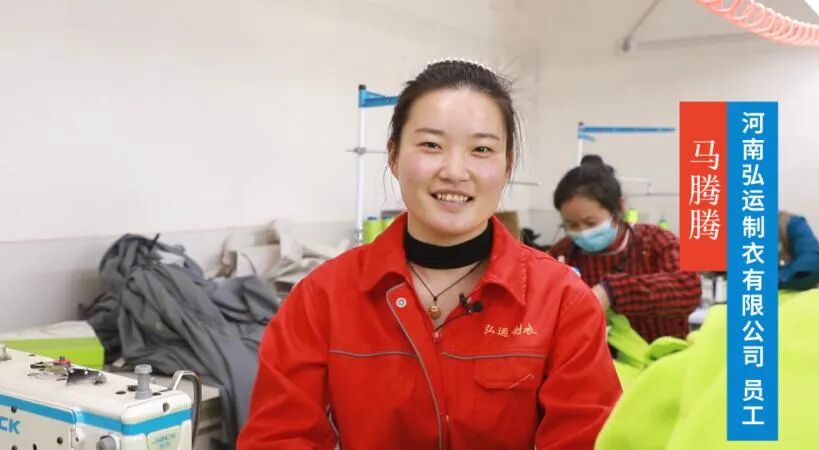 生产线上,来自贾滩镇任堂行政村的马腾腾正在熟练地操作着缝纫机。她已经在厂里工作一年多了,日常的工作是对布料进行加工缝制。“每个月都能拿到五六千,还可以顾着家。”马腾腾笑着说。