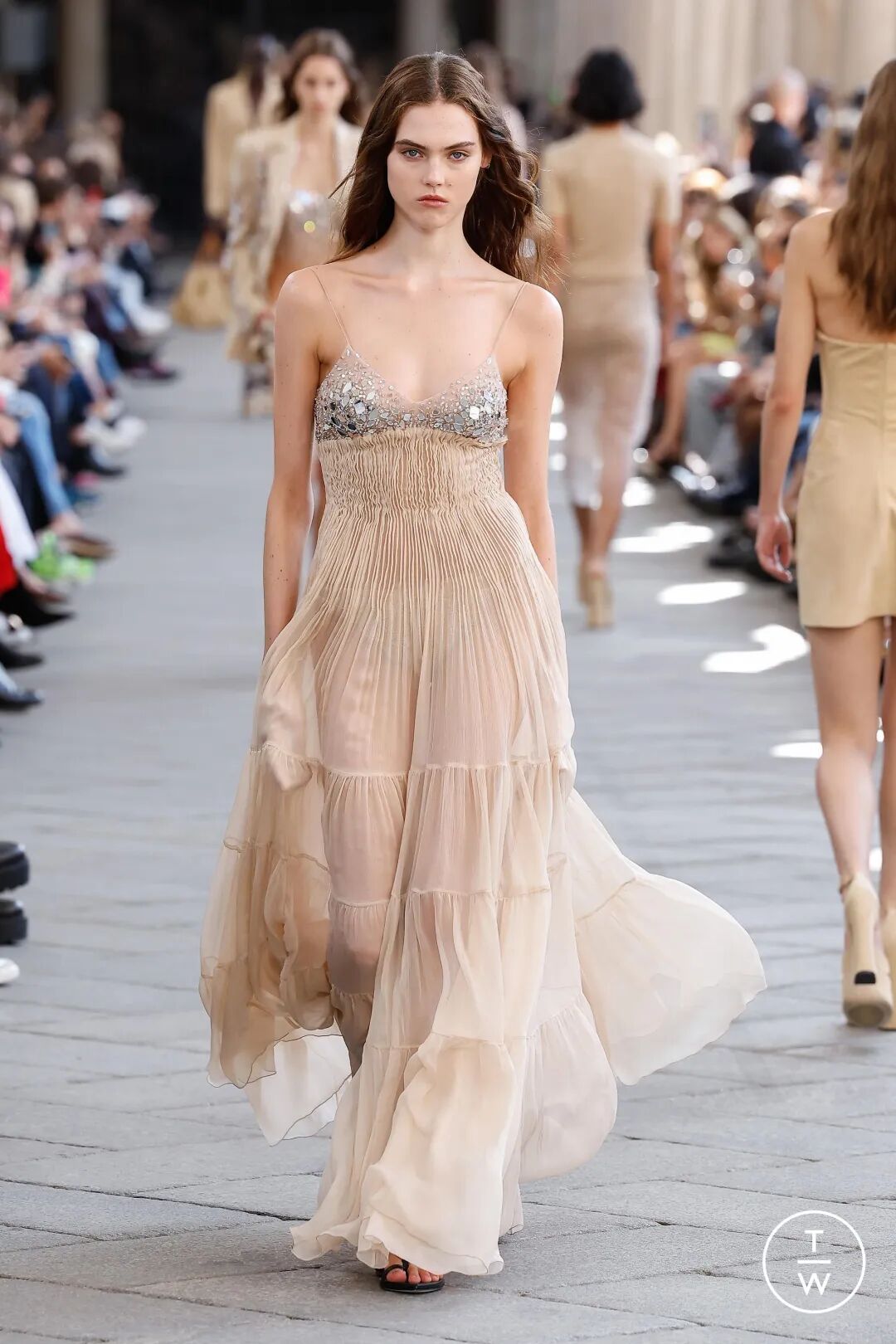 经过2024春夏米兰时装周的盛大展示,带来了最新的女装流行趋势——闪闪发光。闪闪发光的设计元素融入了时尚舞台,成为本季最炙手可热的流行趋势。