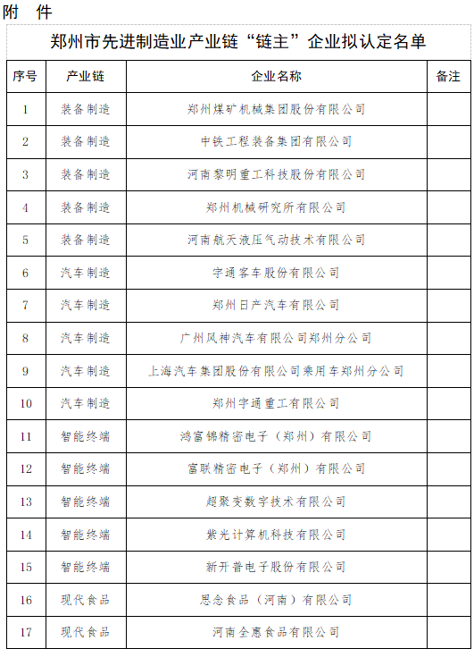 附件_1:郑州市先进制造业产业链“链主”企业拟认定名单.docx