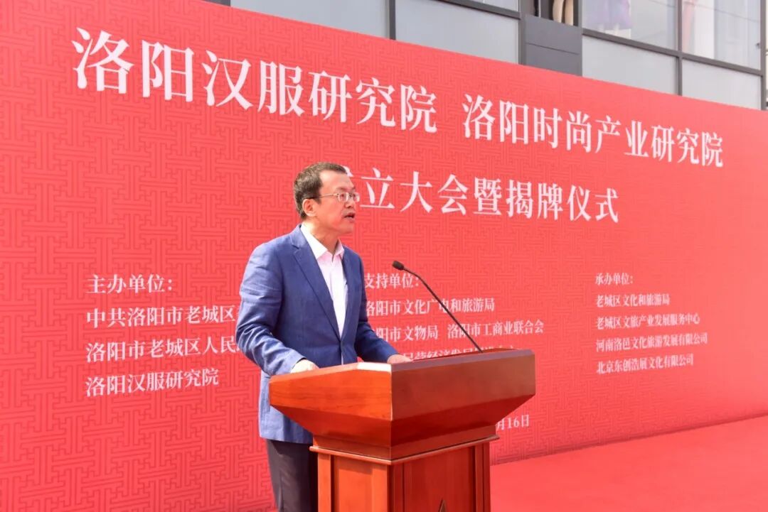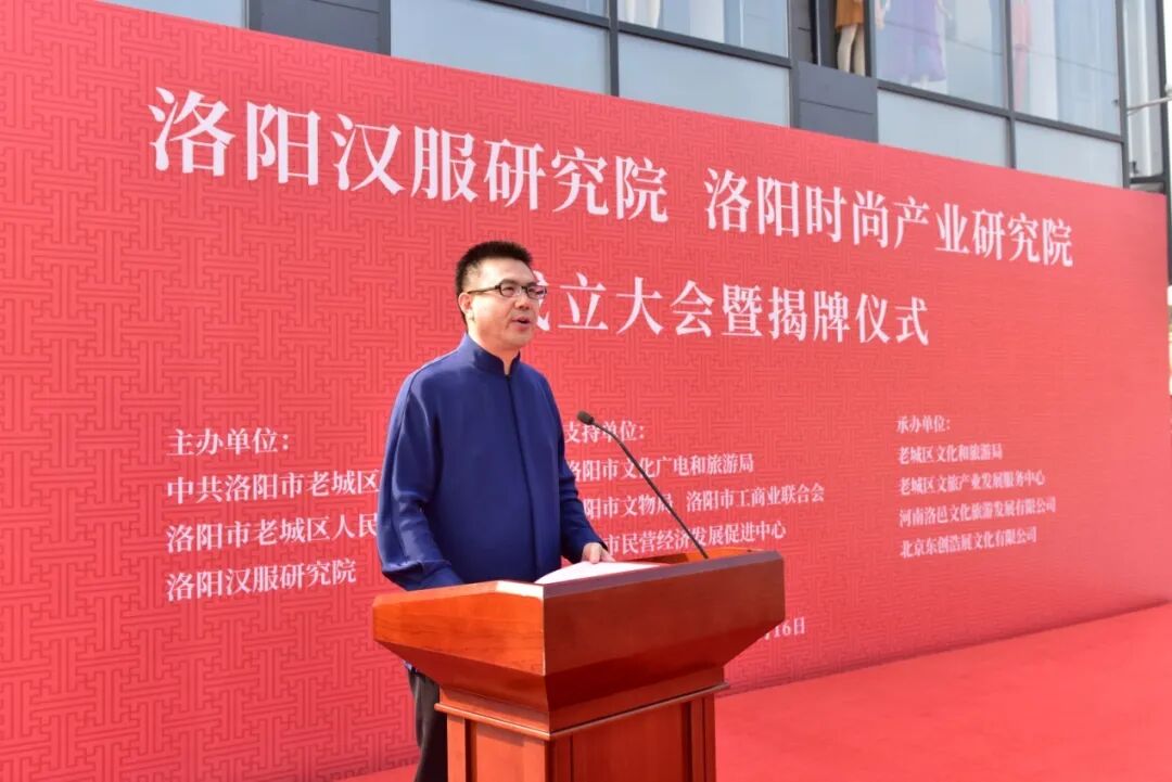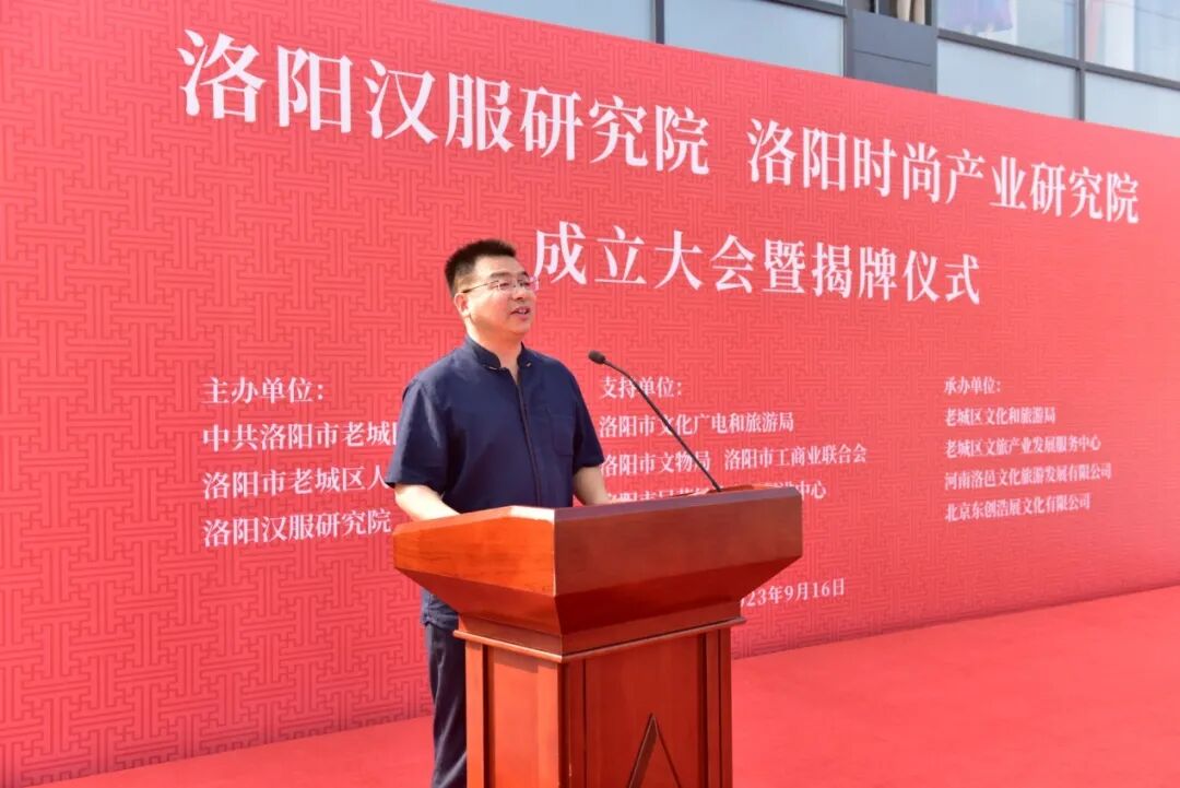 老城区委书记赵书政在致辞中表示,洛阳汉服研究院和洛阳时尚产业研究院落地老城区,是洛阳市委、市政府立足全市发展大局,走好新文旅产业发展之路的重要部署,也是传承弘扬中华优秀传统文化、为谱写新时代新征程中原更加出彩的绚丽篇章做出的重要探索。老城区将不负时代召唤,不负各级重托,不负各界关注,不负人民期盼,拉高标杆、博采众长,汇聚国内外优质资源和高水平设计团队,推出更优的汉服服饰,举办更潮的时尚活动,打造更强的文旅品牌,以汉服之美点燃文化自信、以文化自信自强激发高质量活力。欢迎全国汉服爱好者、研究者欢聚洛阳、欢聚老城,沉浸式体验汉服、研究汉服、推广汉服,共同推动汉服文化的大发展。