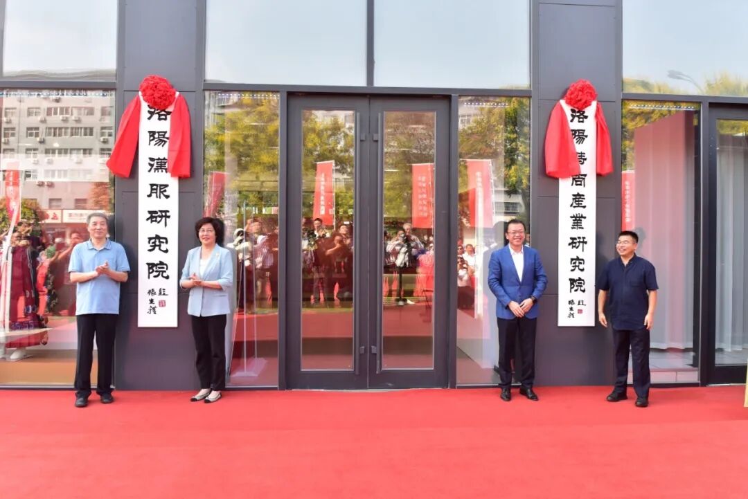 中央文史研究馆馆员、光明日报社原副总编辑赵德润与副市长任丽君共同为洛阳汉服研究院揭牌。中国纺织工业联合会副会长李陵申与区委书记赵书政共同为洛阳时尚产业研究院揭牌。