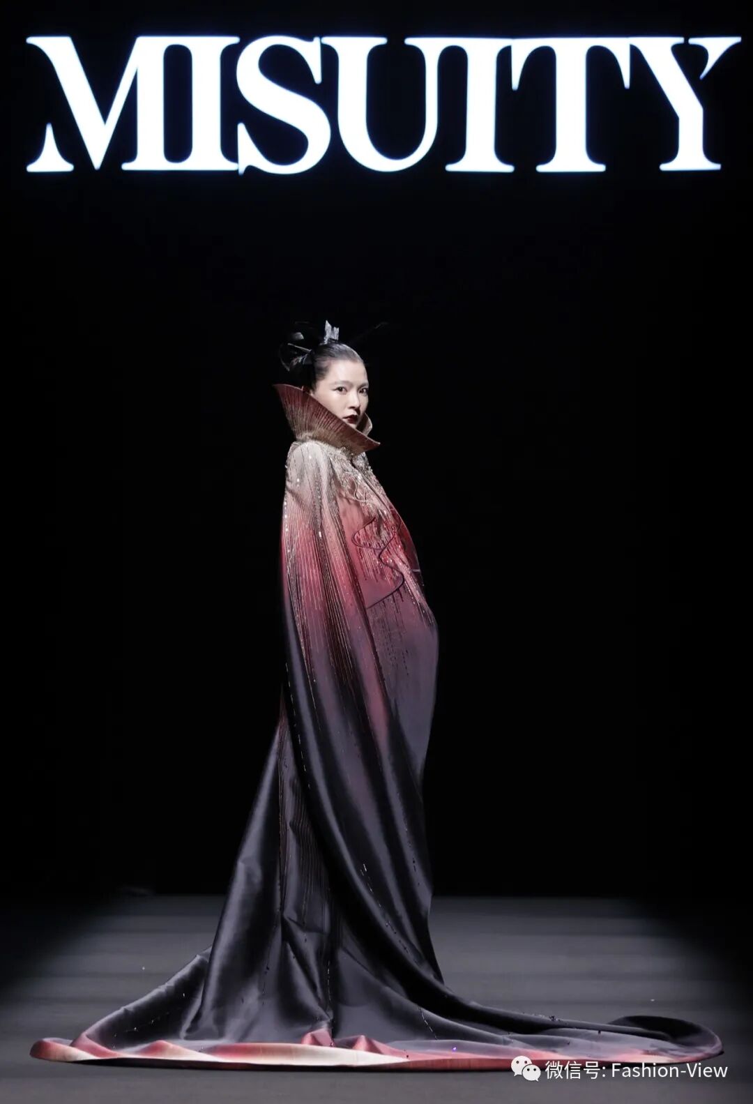 本次发布MISUITY米休缇溯源历史,精选59套作品,全系列沿用秦汉时期帝王御衣的主色调黑、红、金,将“出征·运筹·凯旋”三大主线重现现代舞台。