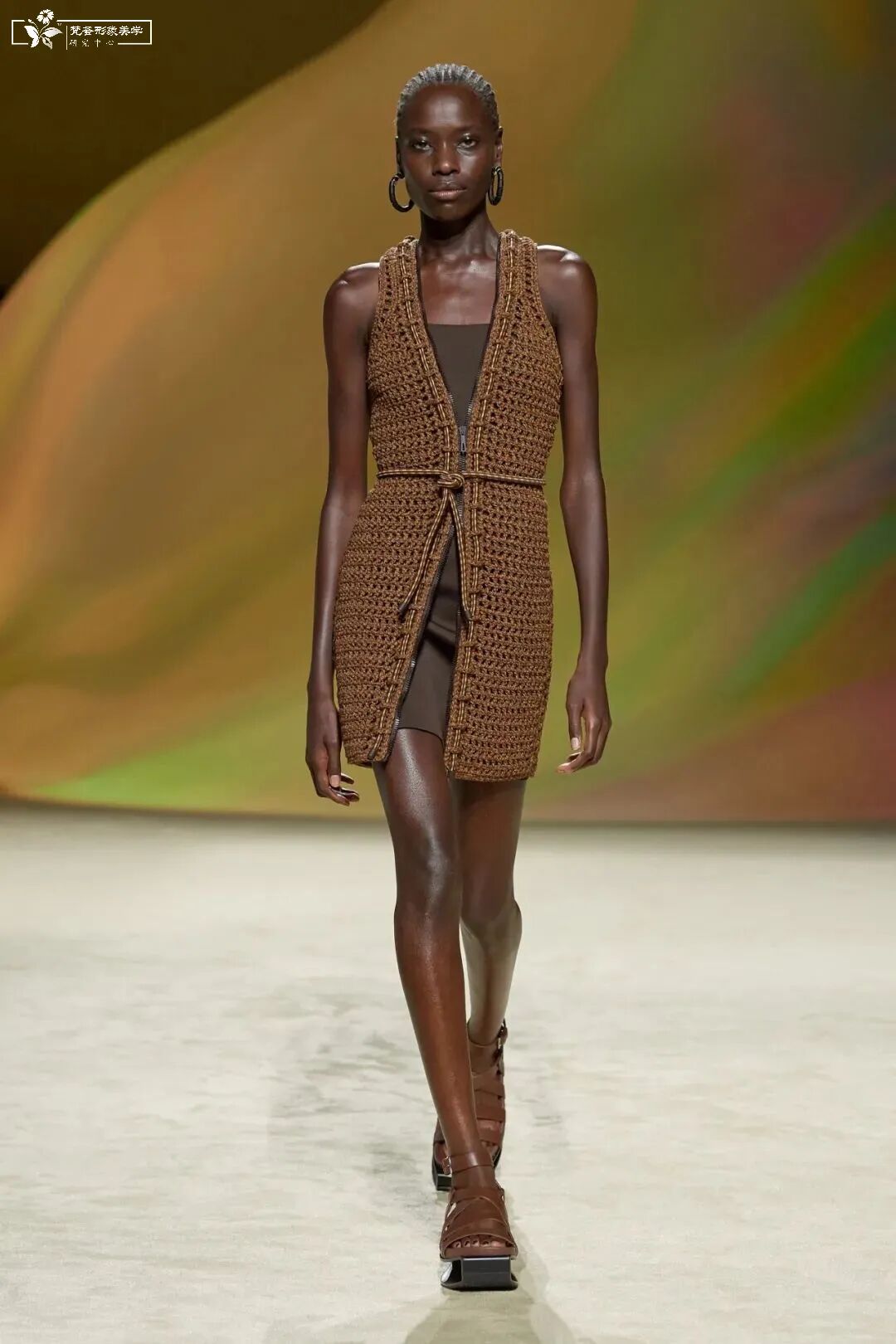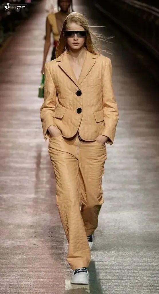 Miu Miu 近两年来棕色单品比较多,麂皮大面积运用在服装上,柔软又富有肌理感,面料表面还有深浅不一的做旧,时尚又富有美感。