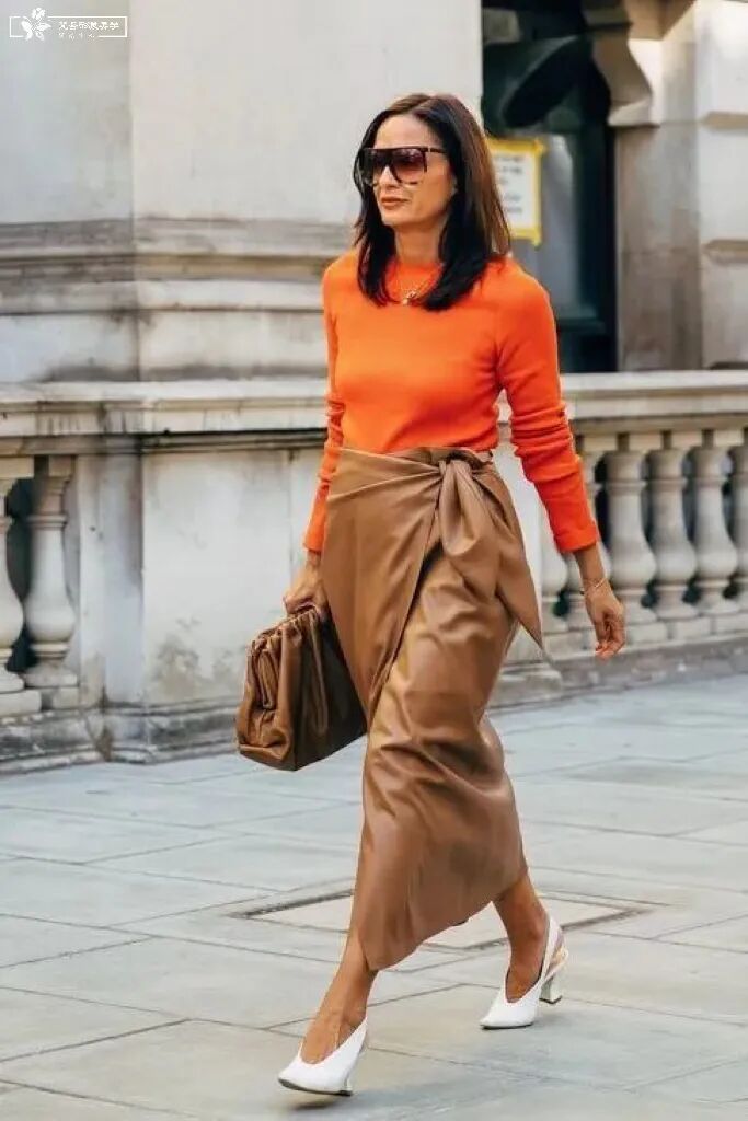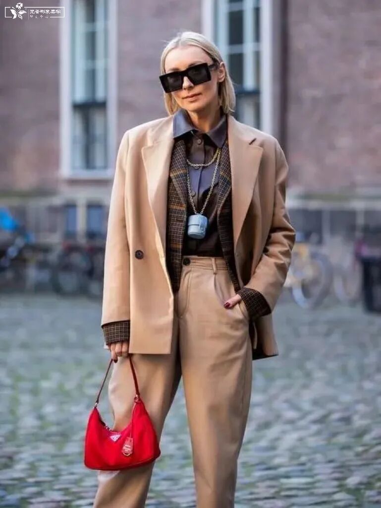 用一件亮色单品去巧妙点缀,会让穿搭更有看点,一个亮色包包、披肩......都能在此基础上起到画龙点睛的效果。