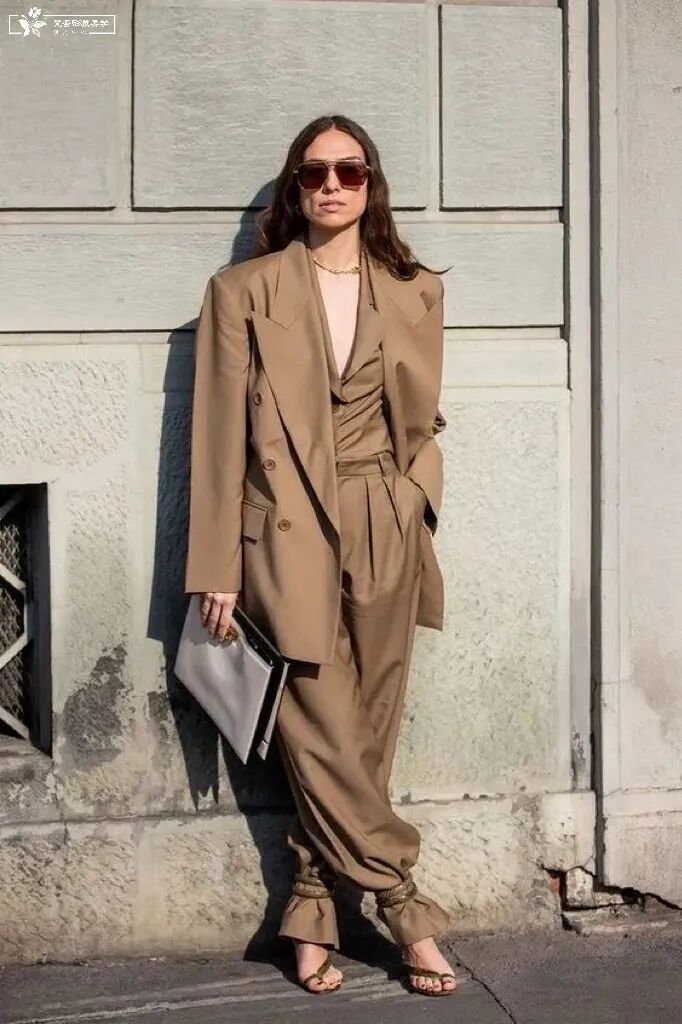 代表着气场与态度的中性西装套装,帅气利落的卡其色工装套裤,通勤或休闲皆可穿。