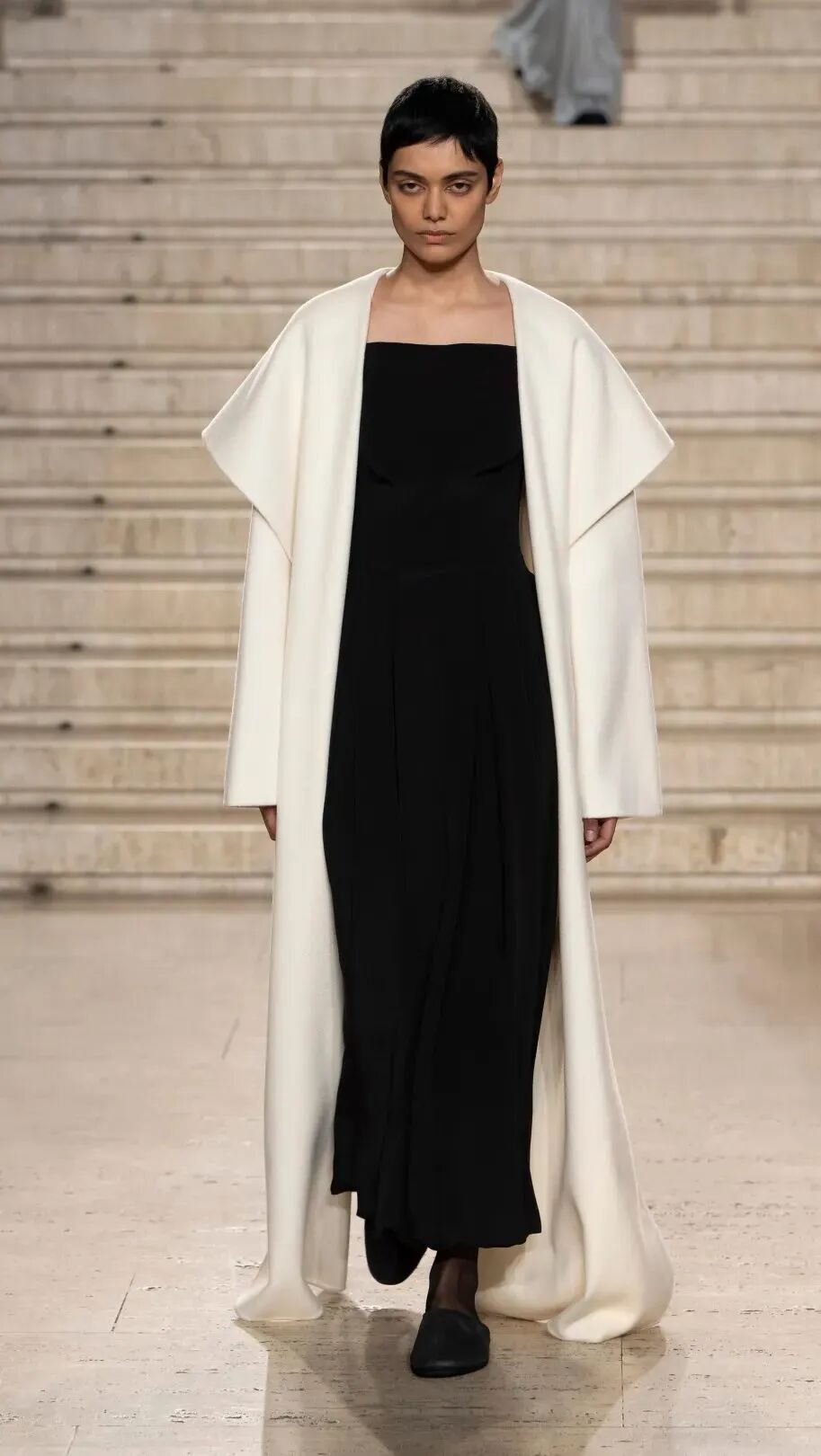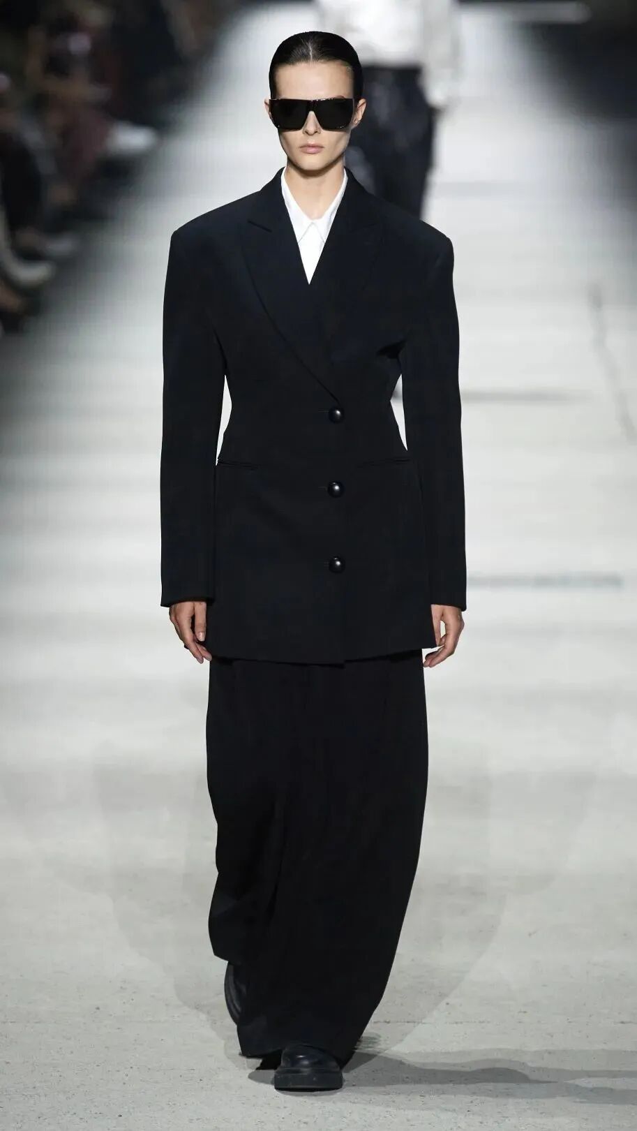 呈现出实穿的系列款式,款式均以极简风格为主,而极简的设计也是本季T台上的主流。实用的黑色几乎以席卷之势占据T台。