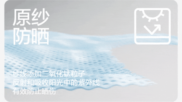 国内防晒服饰领域的头部品牌蕉下,专门开发了独有的科技防晒AirLoop面料,面料纱线采用88%锦纶66+12%氨纶,采用高热传导及特殊编织结构实现冷触,而通过改变面料配比,使得面料在高度拉伸至其原有尺寸的150%下,依旧能够阻隔紫外线穿透,维持其防晒功能。运用十字针织法,线与线之间排布紧密,不但防晒性好还不影响透气性,使防晒衣自带凉感。