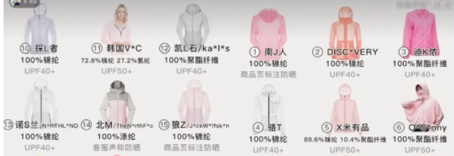 为了脱颖而出和提升价格,有的防晒衣品牌介绍产品时高举“科技防晒”的旗帜,提出开发了凉感科技面料、透气科技、防晒科技面料或是其他专门名称,一时会让消费者眼花缭乱,其实,面料还是以尼龙66纱线为主。