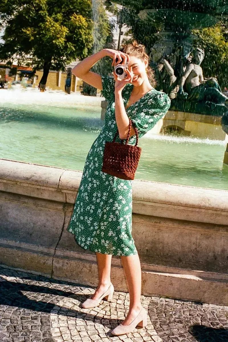 作为法式复古风最具代表性的标志性单品,裹身茶歇裙在法式女郎的穿搭中简直随处可见,真正的集慵懒性感与优雅浪漫于一身。