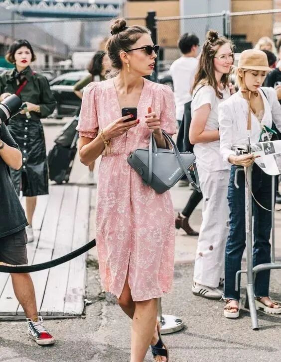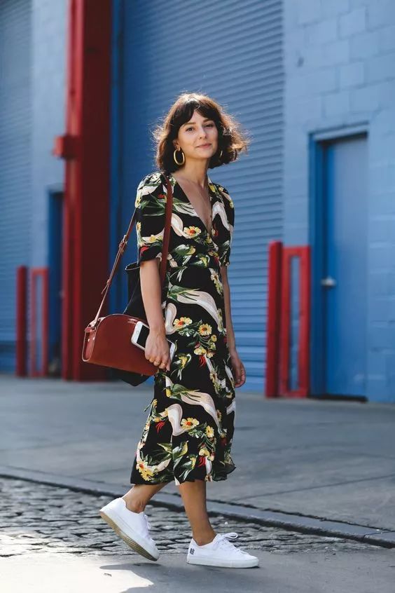 因为泡泡袖连衣裙本身就很甜美了,在鞋履的搭配更建议混搭一些偏中性风格的款式来与之中和,你可以搭配凉拖或球鞋,也可以搭配更复古硬朗的中筒靴,更别具一番韵味风情。