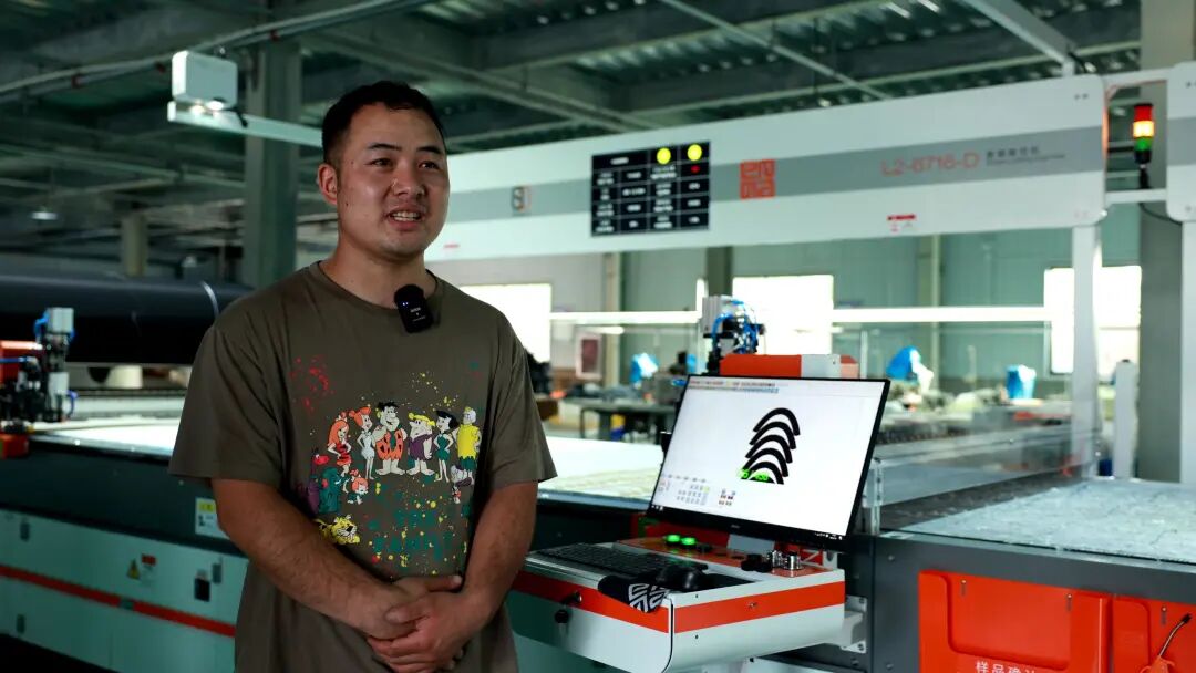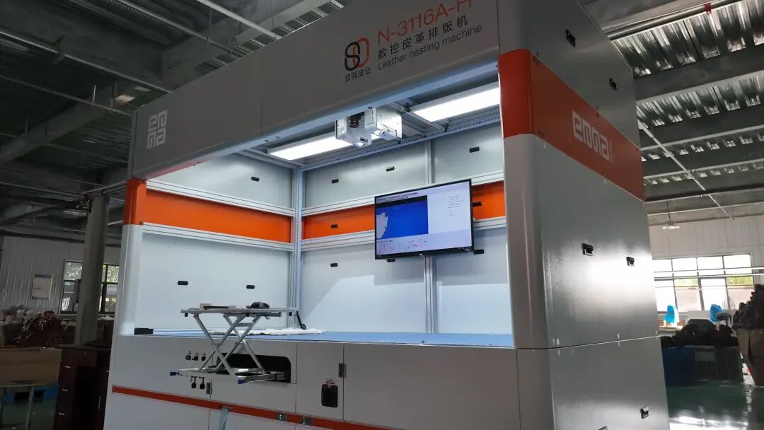 双强皮业有限公司裁断技术员曹飞说:“ 和以往人工裁剪不同,我们引进的意大利排版软件可以有效地识别材料的瑕疵,节省8%的材料,五分之二的人力,提高了生产流程的效率,实现了质量、效率和成本的优化。”