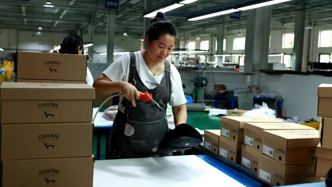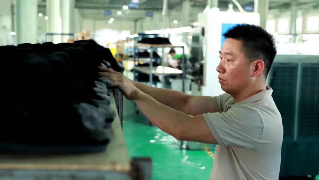 走进双强皮业有限公司的生产车间,3条生产线满负荷运转,虽然外面是将近四十度的高温天气,但是咱们的工人们依旧是活力满满,200余名工人正在生产线上紧张忙碌着,他们正在赶制出口欧美、中东地区的海外订单。下料、上针车、鞋底加工、成型……每天13个小时生产时间内,要制作8000双成品鞋,平均每分钟就有10双鞋从生产线流出。