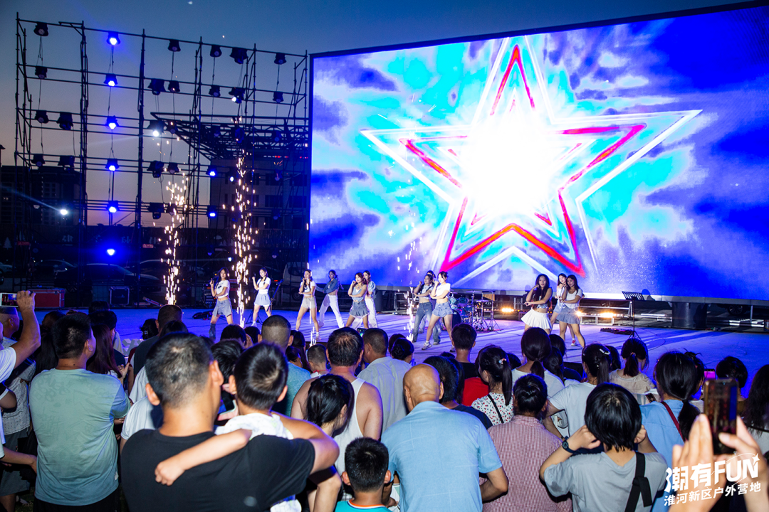 暖场节目在天色渐晚时开启,清爽唯美的国风舞蹈和动感酷炫的拉丁街舞轮番上演,乘着夏日夜晚的柔柔清风,将气氛逐渐烘托至高潮。