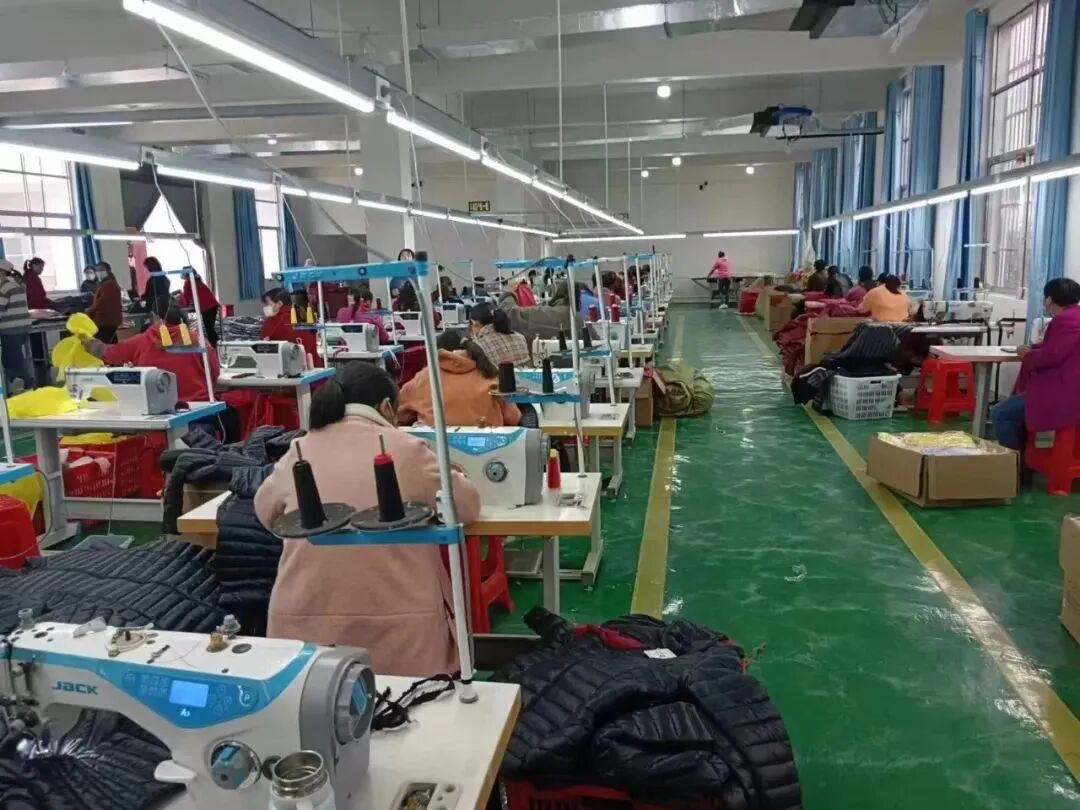 丰盛服装厂里,20余名员工正忙碌地制衣;
