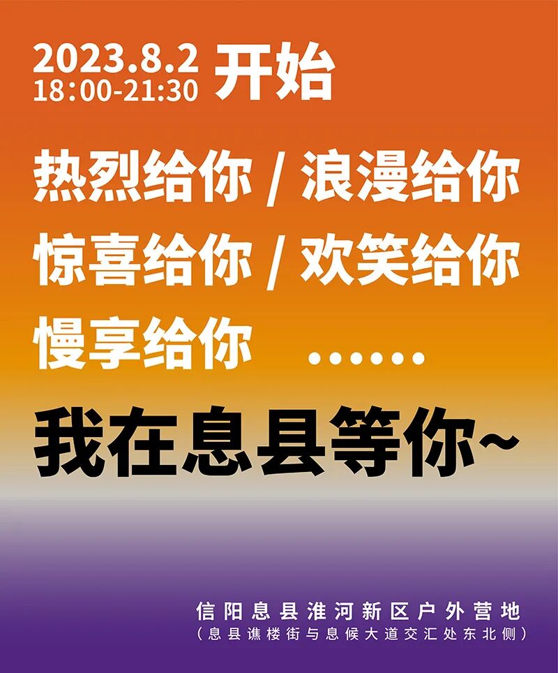 未来,息县淮河新区户外营地也将不断探索营地运营日常化,融入年轻化、潮流化的文旅业态,开展形式多样、内容丰富的系列青年时尚文化活动。努力打造具备沉浸体验、前沿创意、社交互动、打卡消费、休闲娱乐等多功能的趣味生活体验空间。紧扣人民群众对美好生活的向往,积极融入青年人生活,吹响息县的“青春时尚”号角!