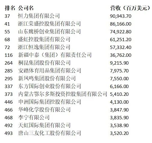 十余家纺织服装企业上榜!《财富》中国500强公布