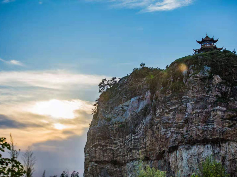 拱翠亭、东坡亭、祖师庙、桃花谷、玻璃栈道