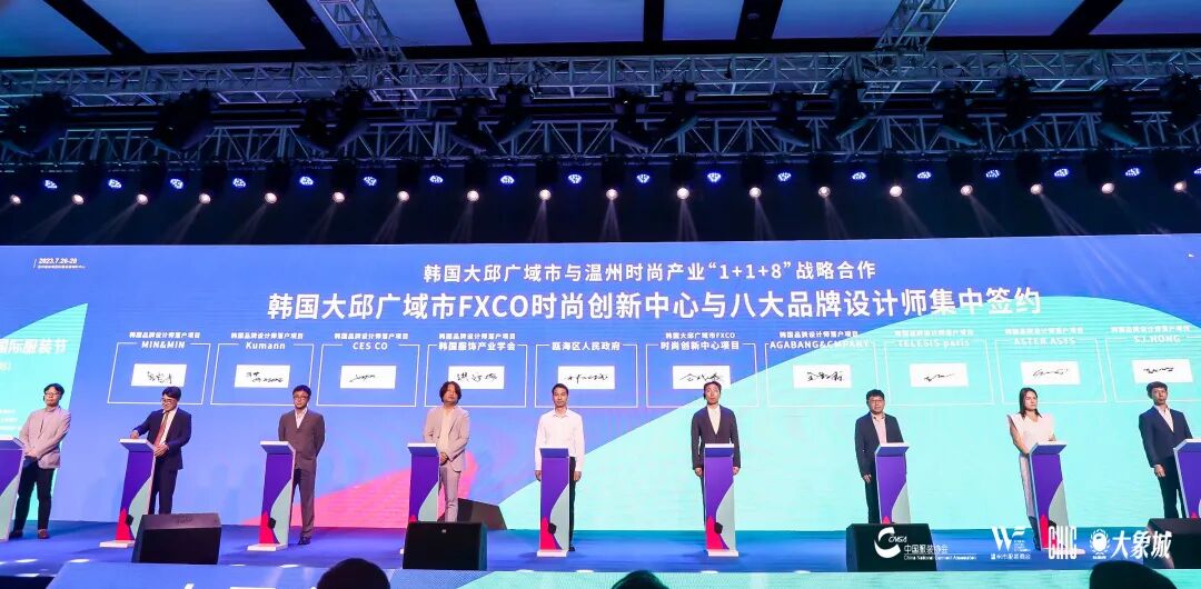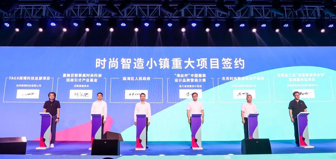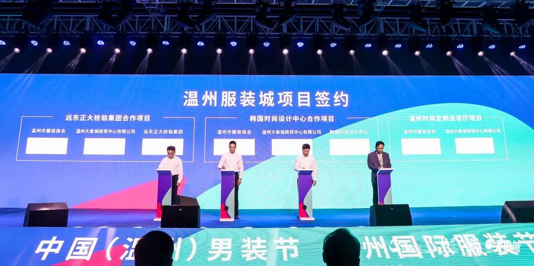 当天,温州服装城、重大服装商贸、时尚智造小镇、韩国大邱市与温州服装产业“1+1+8”战略合作等一系列项目相继签约落地,将促使一批优质产业项目落户温州服装城,并帮助更多温州品牌走向全国,进一步提升温州服装国字号金名片的含金量,共同塑造好温州服装的区域品牌。