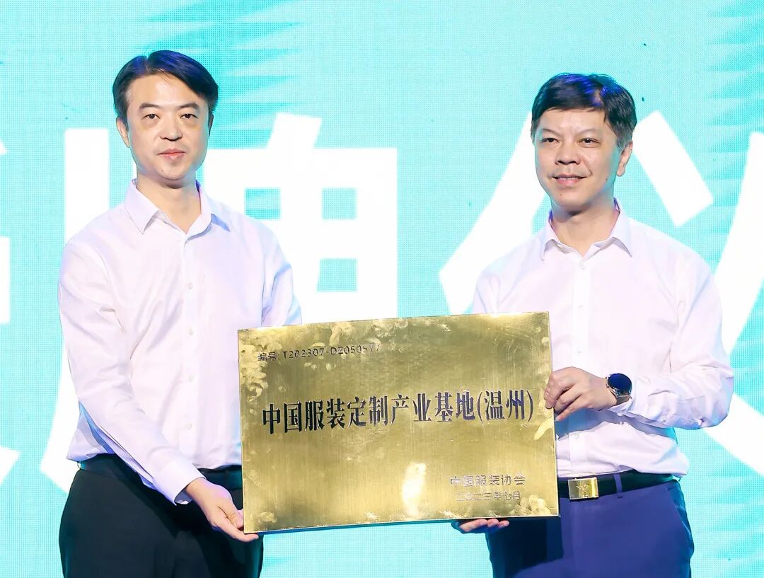 作为本次活动的重头戏,现场还举行了“中国服装定制产业基地”授牌仪式。这意味着“中国服装定制产业基地”正式授牌瓯海,并落户温州服装城。今后,通过温州服装城的全产业链平台,基地将为国内外服装定制领域和相关服务机构提供形象展示推广、商贸对接、资源链接等服务。同时,基地的正式挂牌,还将进一步拉长温州服装销售上下游产业链条,持续提升温州服装产业层级。