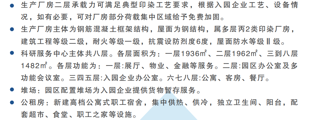 标准化厂房,是染整企业的承载主体,一期占地317亩,建筑面积26万m²,主要建设12栋标准厂房、1栋科研服务中心,总投资8.27亿元。