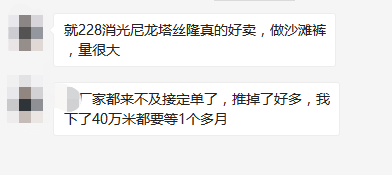 “228消光尼龙塔丝隆真的好卖,做沙滩裤的,量很大……”“有厂家都来不及接定单了...