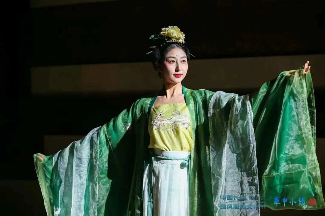 当音乐响起,演员们身着华丽的汉唐服饰,步入舞台,展现出古代贵族的风采。他们的服饰细致且富有流动感,每一件服装都经过精心制作和设计,展现了汉唐时期的优雅与华丽。秀场中,舞者们以独特的舞姿和优美的动作展示了汉唐时期的舞蹈艺术。她们的舞姿柔美而流畅,仿佛在讲述着古代的故事和传说。观众们被舞者们的精彩演出所吸引,仿佛穿越时光,置身于一个璀璨辉煌的古代王朝。