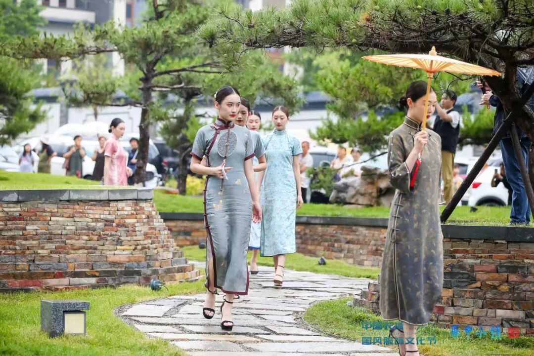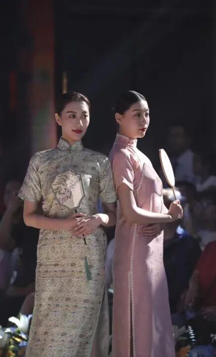 7月22日下午,松风馆前松涛阵阵,清爽的凉风轻柔地吹拂着人们的脸颊。此时,模特们身穿拥有传统韵味的旗袍,以优雅的姿态走入观众视野。小桥下的流水潺潺流淌,烟雾在空中弥漫,给整个场景增添了一层神秘感。从迷雾中传来的古筝声伴随着模特们的舞步,仿佛将观众带入了梦幻般的境界。