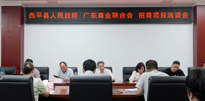 7月20日上午,西平县与广东商业联合会召开招商项目洽谈会。西平县县长侯公涛、副县长韩靖出席会议;县发改委、财政局、今三麦食品等单位负责人参加会议。