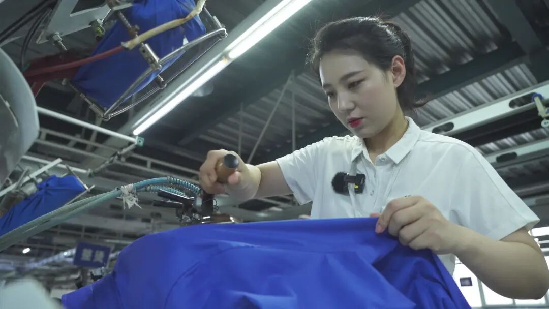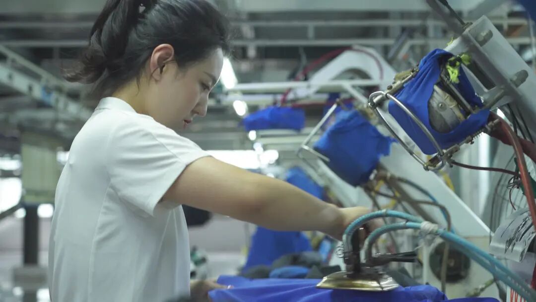 衣服做好了,接下来就是整造型了,也就是整烫定型。衣服生产出来,穿上笔挺才有型。