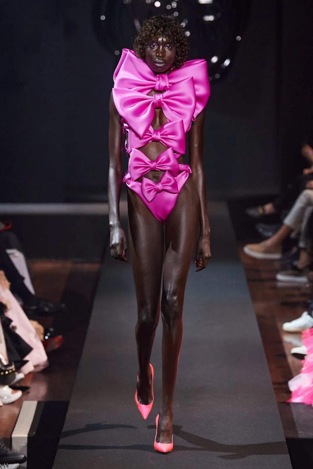 蝴蝶结等浪漫又女性化的装饰将在明年秋天随处可见。这些精致的小珠宝或戏剧性的元素采用精致的丝绸、皇家天鹅绒或轻盈的薄纱制成,为该品牌的全新高级定制系列增光添彩。Elie Saab在绿色缎面晚礼服上添加了一个大蝴蝶结,似乎紧贴模特的肩膀;Alexis Mabille则推出了一件饰有数十个小蝴蝶结的柔和配色外套;Viktor & Rolf展示了一款带有大蝴蝶结的紫红色泳衣。