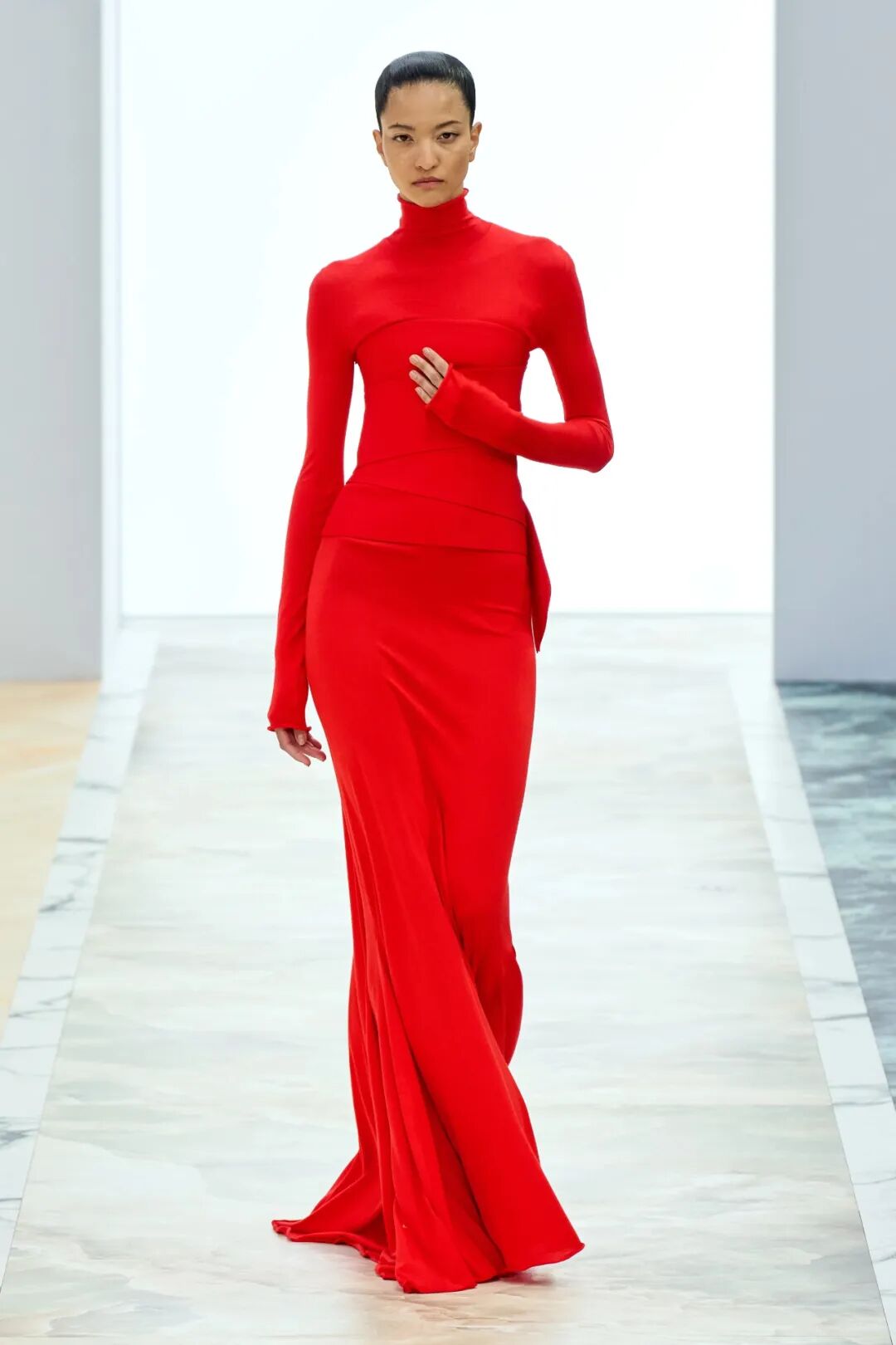 新一季诱人而独特的红色不仅在成衣系列中占据了主要地位,而且在高级定制时装中也占据了主要地位。因此,芬迪 (Fendi)展示了一款经典红色合身长裙,搭配微型包袋;香奈儿 (Chanel)推出了一件红色花呢夹克,搭配喇叭裤;而华伦天奴 ( Valentino)在白色连衣裙上添加了一件红色外套。