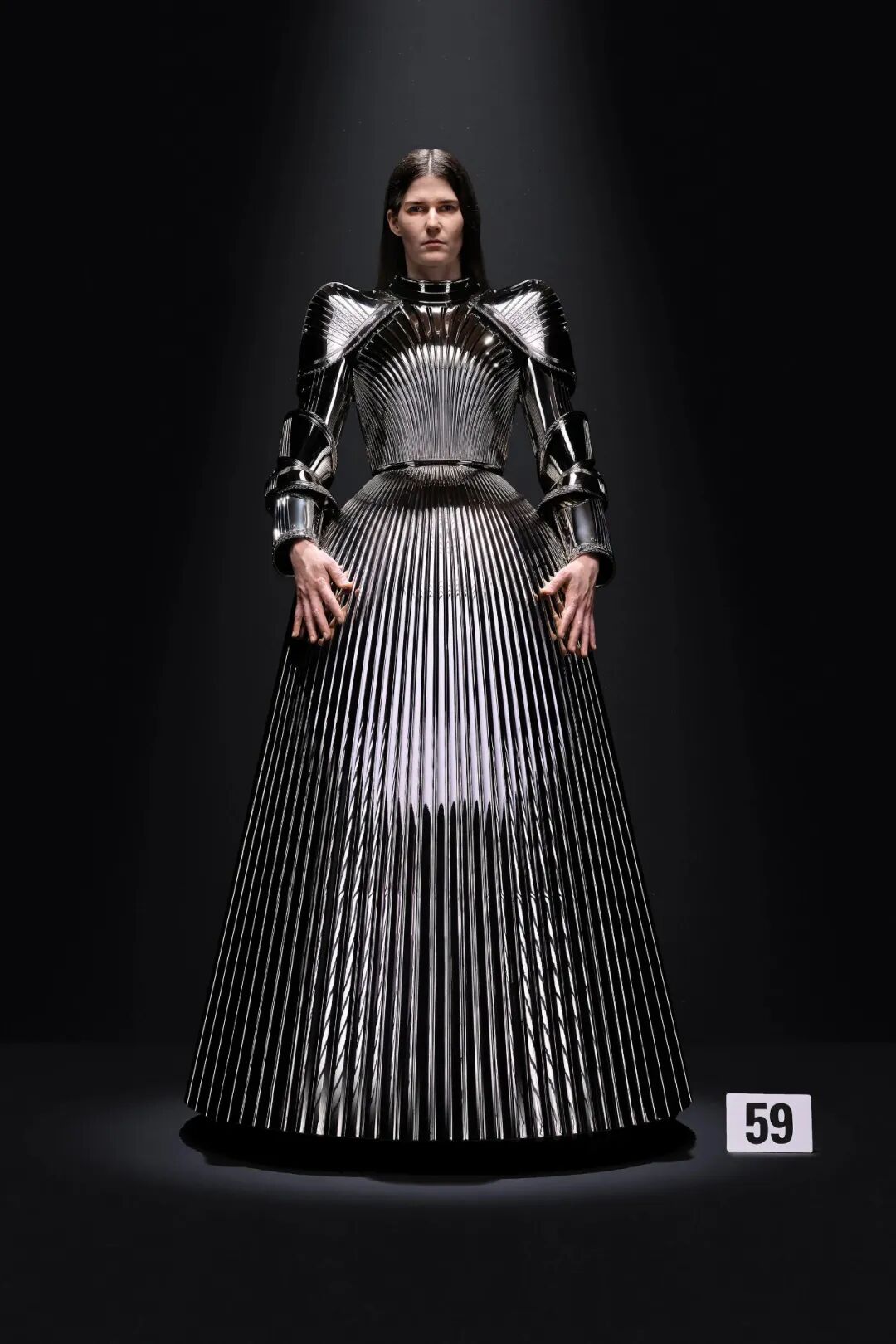除了经典婚纱之外,本季设计师还提供了新的非标解决方案。因此,Elie Saab展示了粉色拖裾连衣裙、优雅的斗篷和透明长头纱,Thom Browne - 白色镂空长拖裾礼服外套,以及Balenciaga - 新娘的金属形象,让人想起铠甲。