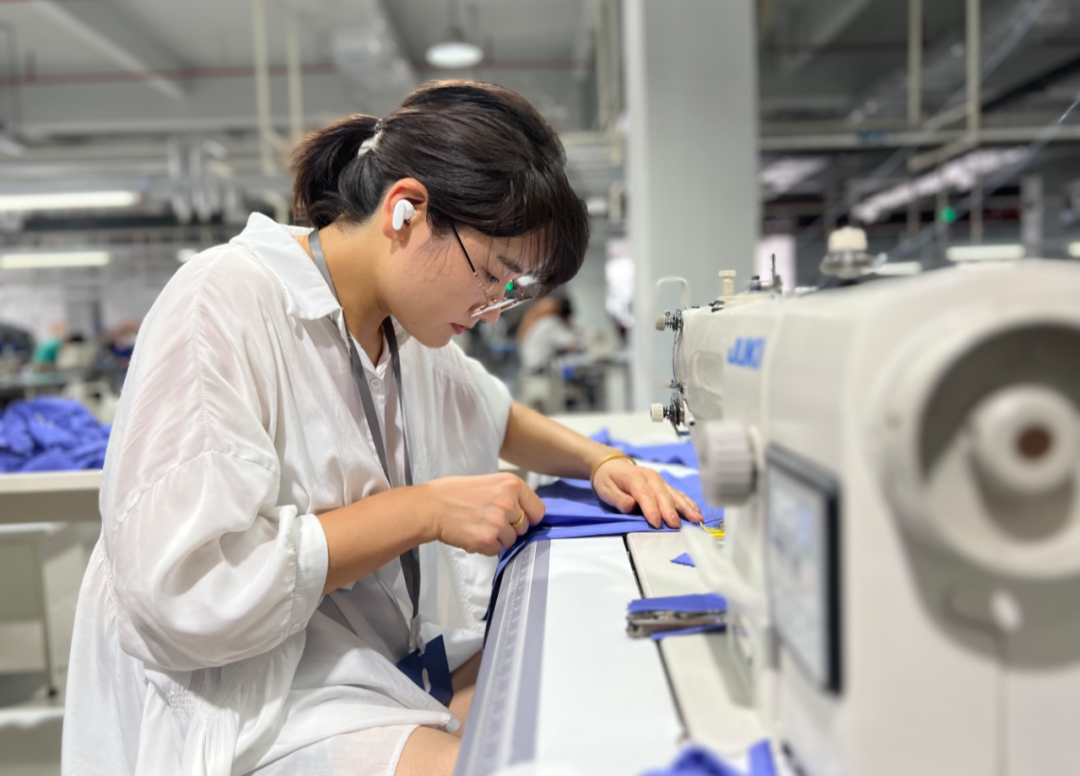 整个车间通过搭载数据化应用的智慧协同系统,又好比装上“数字大脑”,使其生产具备快速反应能力。比如成捆的布料在缝前裁剪区内可通过配置的自动拉布机、自动裁床等设备,实现一键裁剪,并自动生成唯一条码,结合RFID射频技术,为后续缝制提供数据基础。数据的流通应用,可实现各部门、各环节高效协作,使得企业能够根据实际更有针对性地调整生产方案,也为产品品质提供更加坚实的保障。