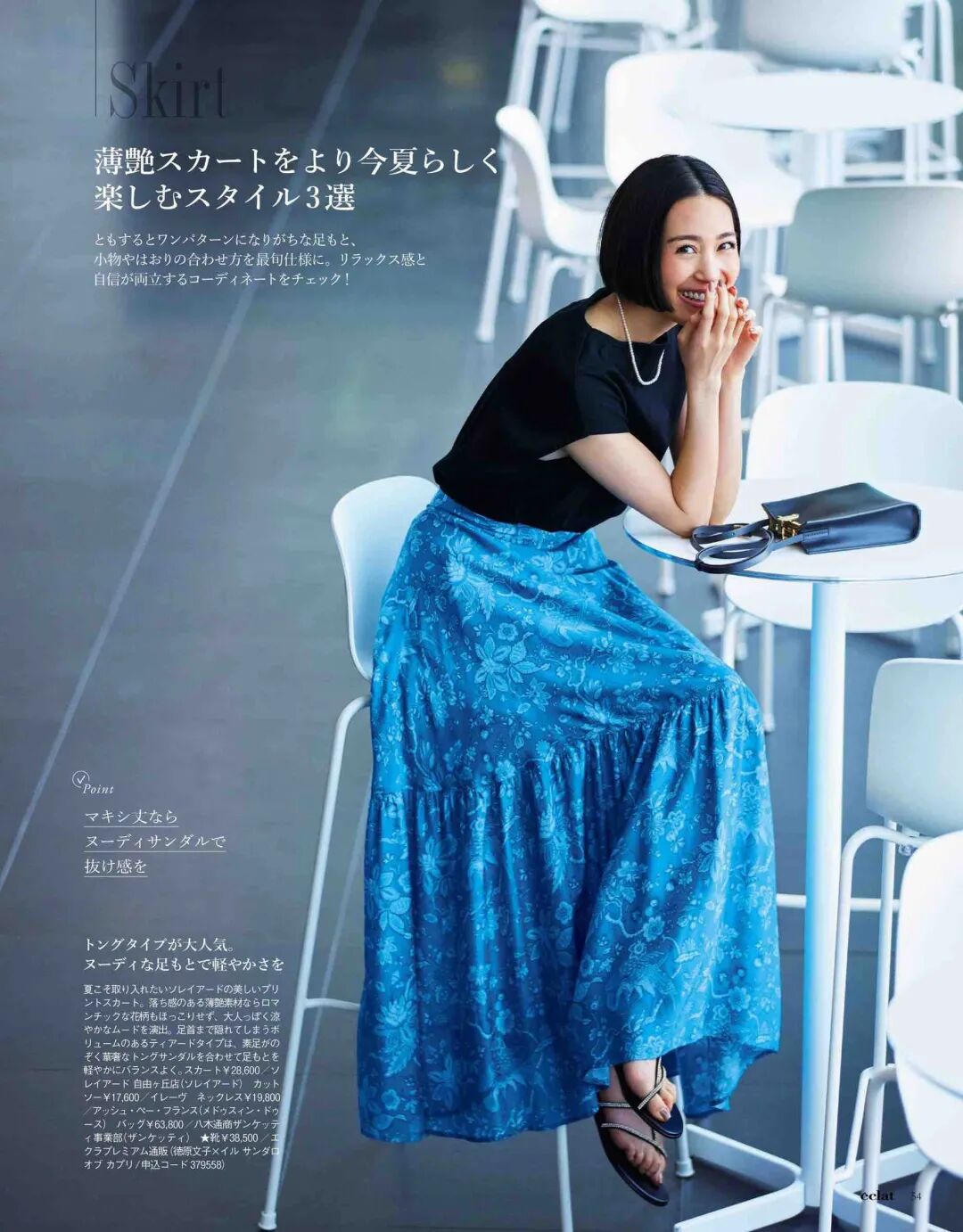 通勤、轻熟女生可以试试蓝色半裙,搭配黑色上衣,很有大方优雅的感觉。