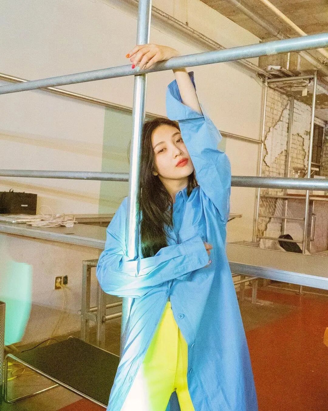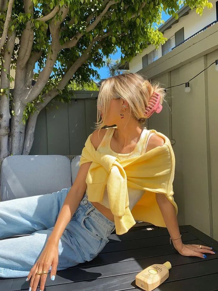 人手必备好几条的水洗牛仔裤,不要只会用来搭配白T恤、白衬衫了。将白色替换成柠檬黄吧,黄+蓝能给予你瞬间减龄5岁的奇妙能力。