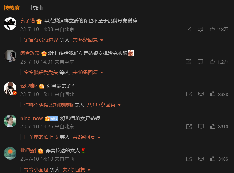综上所述,Prada选择中国女足做代言是一场奢侈品和运动明星的完美邂逅,有中国女足这样的合伙人,会给品牌带去无限的正向影响力。在足球和篮球这两类传统由男性统治的领域,女子运动员或团队得到大牌赞助并不是一件容易的事,而中国女足靠出色的好成绩和长期自律的好形象夺得了这个机会,希望未来在时尚赛道上看到姑娘们更多出色的表现。