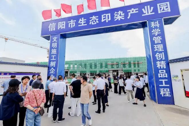 信阳市生态印染产业园总占地528亩,总投资28.65亿元。可年产 9.5亿米高档机织化纤服装面料染整产品、年产5.5万吨高档针织化纤服装面料染整产品。目前,园区道路、办公楼等附属设施已经完成,厂房建设正在加速推进,一大批后整理和服装加工企业闻风而动,纷纷在印染园附近谋篇布局。