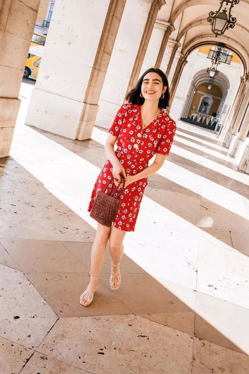 慵懒的红色碎花法式茶歇裙,度假风满满,而且超有魅力~