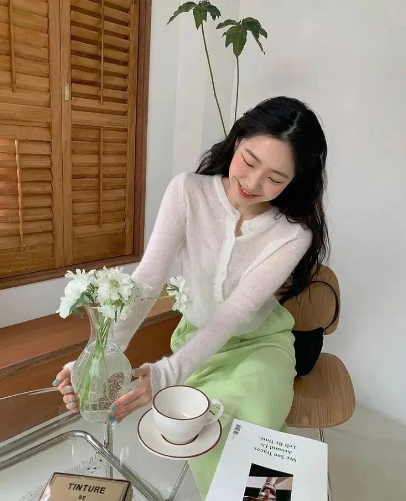 透着清新味道的绿色,与白色组合时,干净又清爽,秒变仙女。
