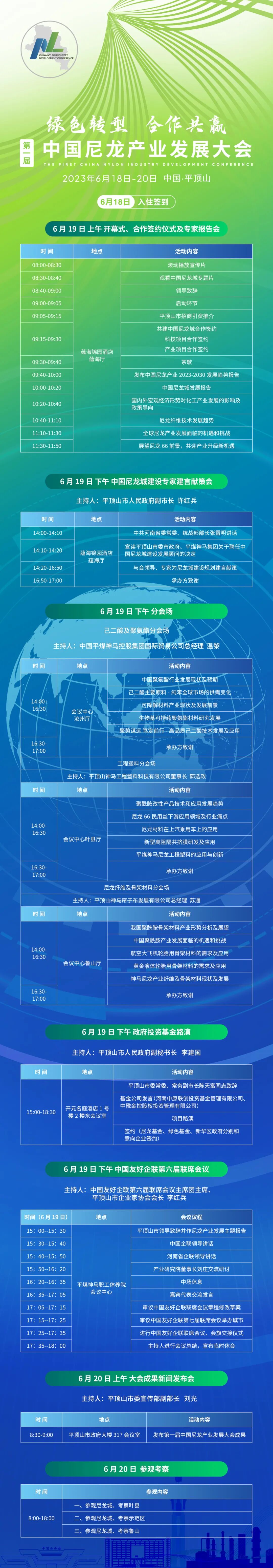 本届会议以“绿色转型 合作共赢”为主题,将邀请政府相关部门,多位院士,高等院校、科研院所的专家、学者,国家级行业协会,行业龙头企业等,以“推进尼龙新材料产业高质量发展,促进业内投资、贸易和技术合作”为宗旨,共同就中国尼龙产业发展面临的机遇和挑战等热门议题进行深入探讨。议程如下: